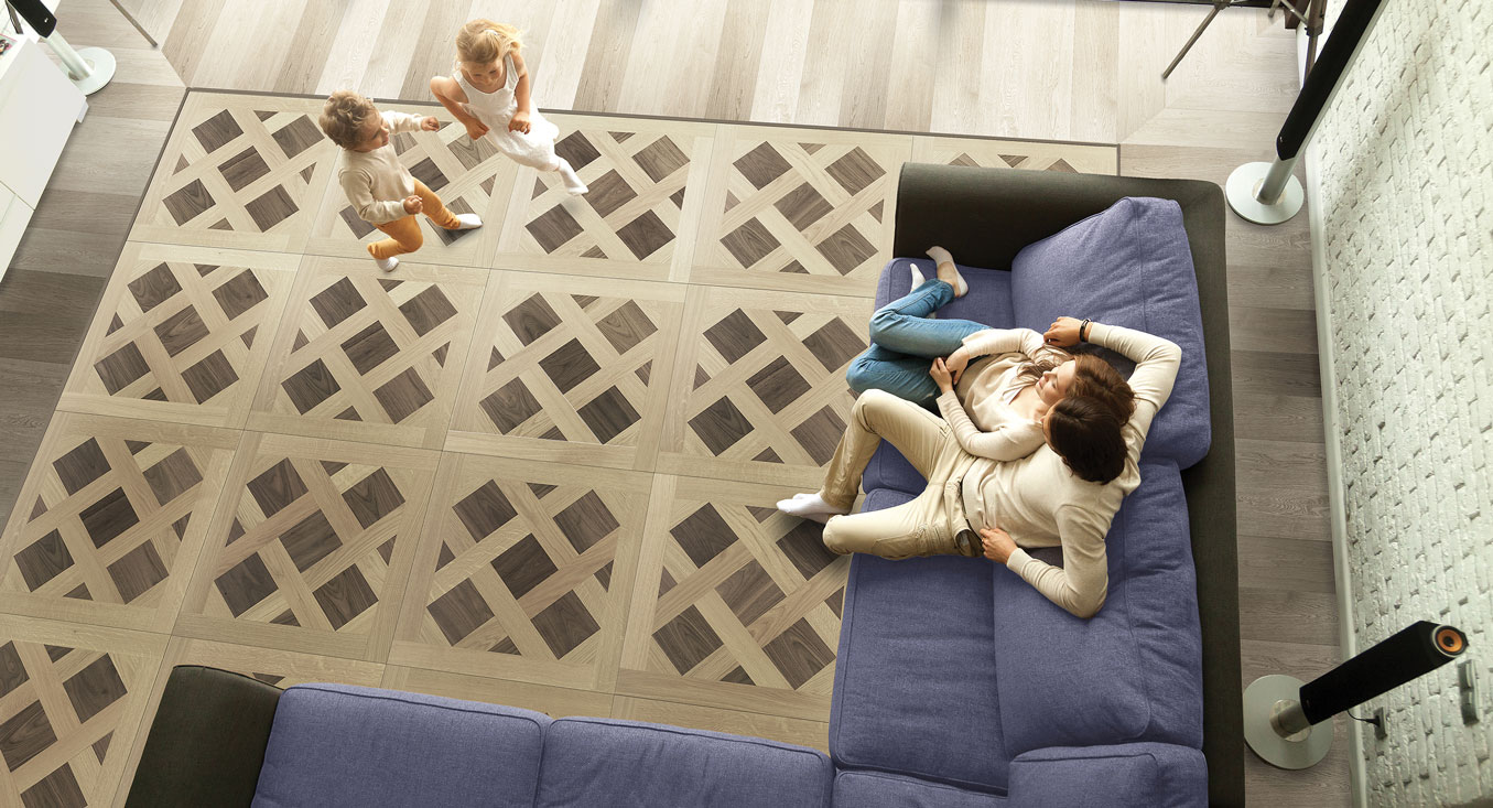 Le quadrotte Barbaro sono un parquet prefinito realizzato in rovere e legno noce nella variante europea. Parquet 2 strati dall’elegante disegno geometrico disponibile nel formato 600x600mm.